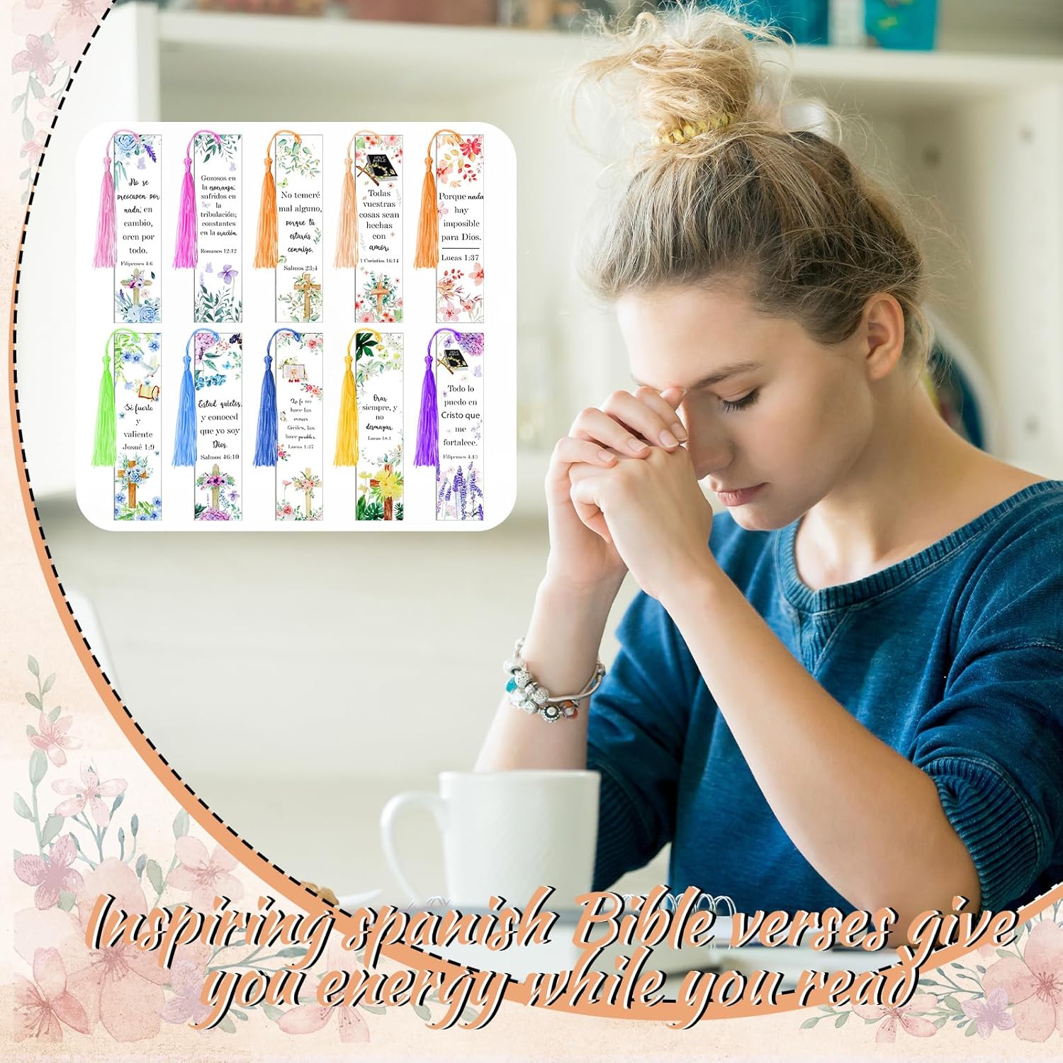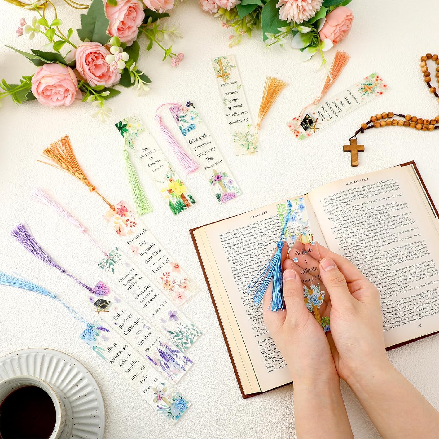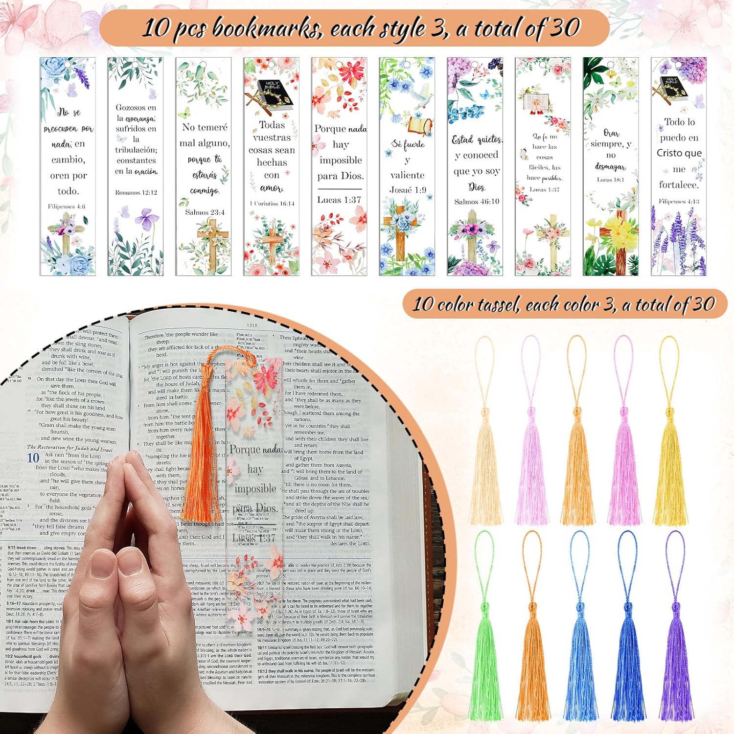 30 Marcapáginas de Acrílico con Versículos Bíblicos en Español y Borlas