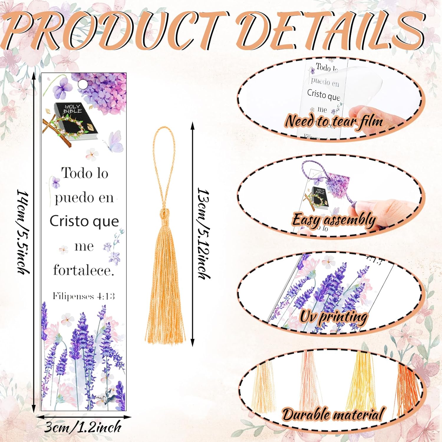Estos marcapáginas de acrílico con versículos bíblicos en español y borlas no solo te ayudarán a mantener tu lugar en tu libro favorito, sino que también servirán como una fuente constante de inspiración y un hermoso testimonio de fe.