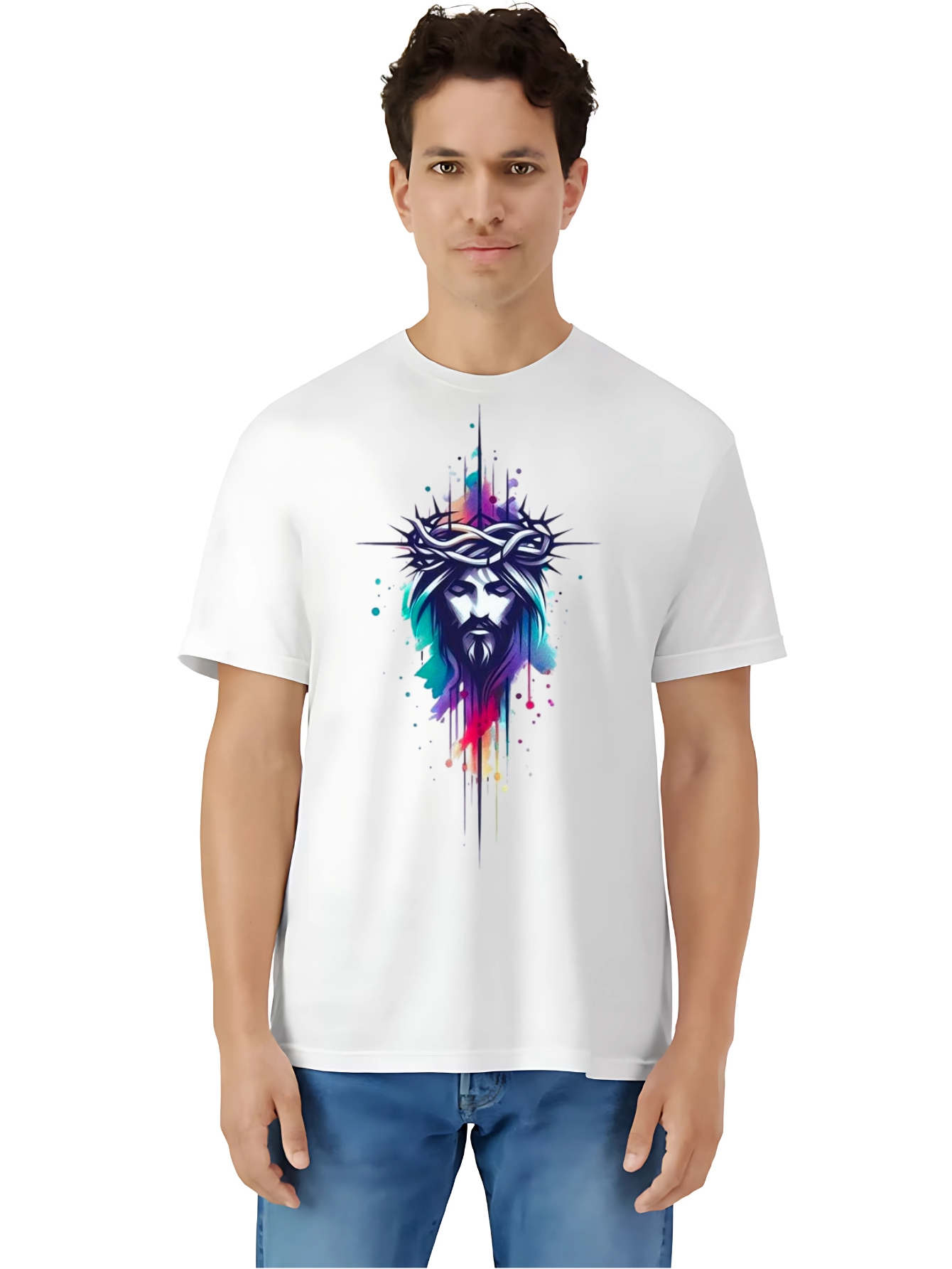 Camiseta Unisex de Algodón Blanco con Estampado de Jesús