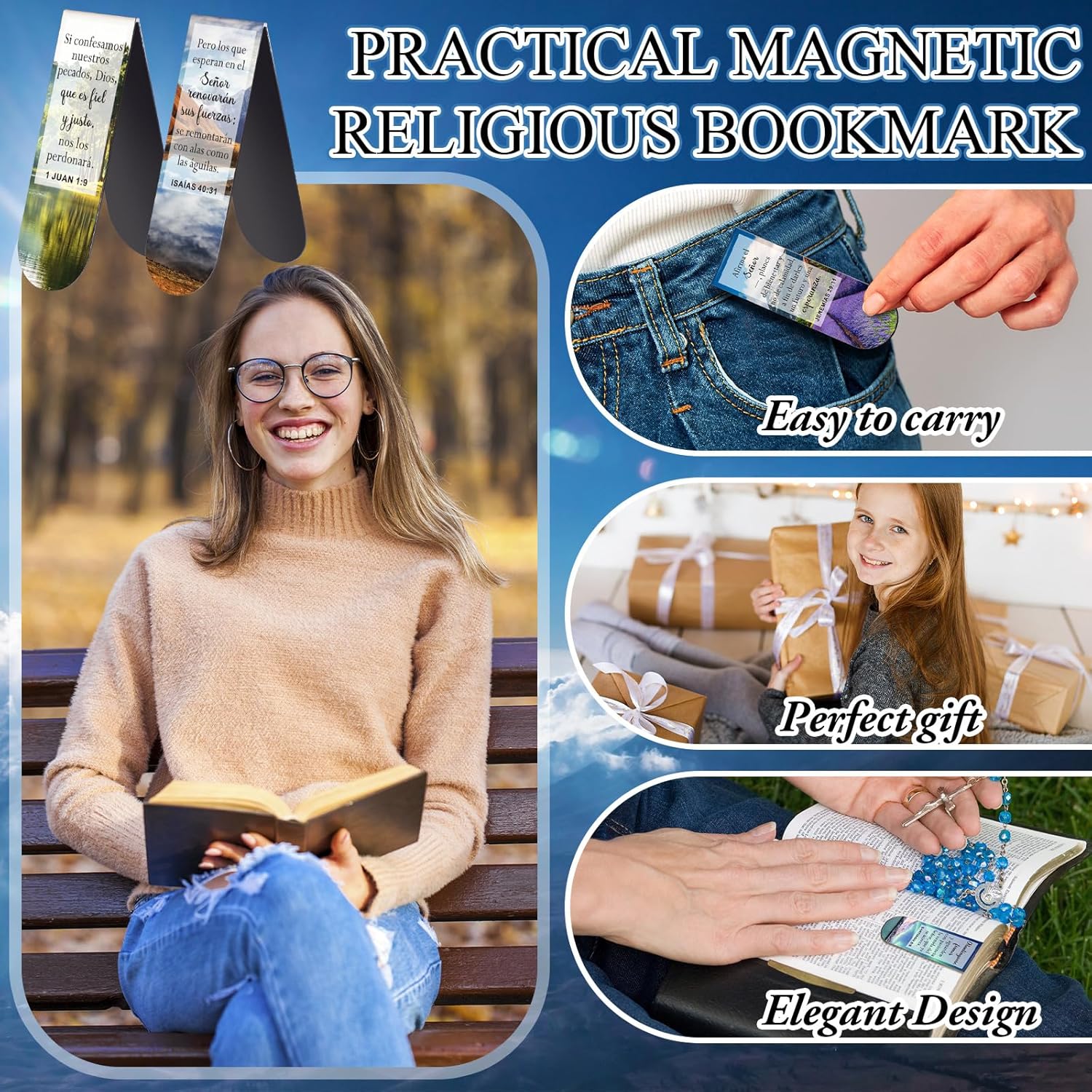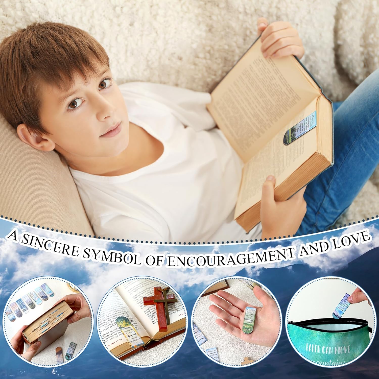 - Bonito tamaño y material duradero: cada marcapáginas cristiano mide 2.28 pulgadas de largo y 0.74 pulgadas de ancho (4.25 pulgadas cuando se abre); están hechos de papel e imán, asegurando seguridad y durabilidad sin ocupar espacio adicional en tus libros