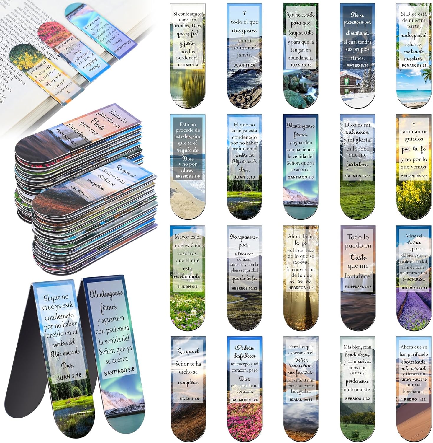 - Diseños inspiradores: cada marcapáginas magnético español cuenta con colores vibrantes y textos motivacionales, lo que te permite mantenerte comprometido y energizado mientras lees tus pasajes bíblicos favoritos o textos religiosos